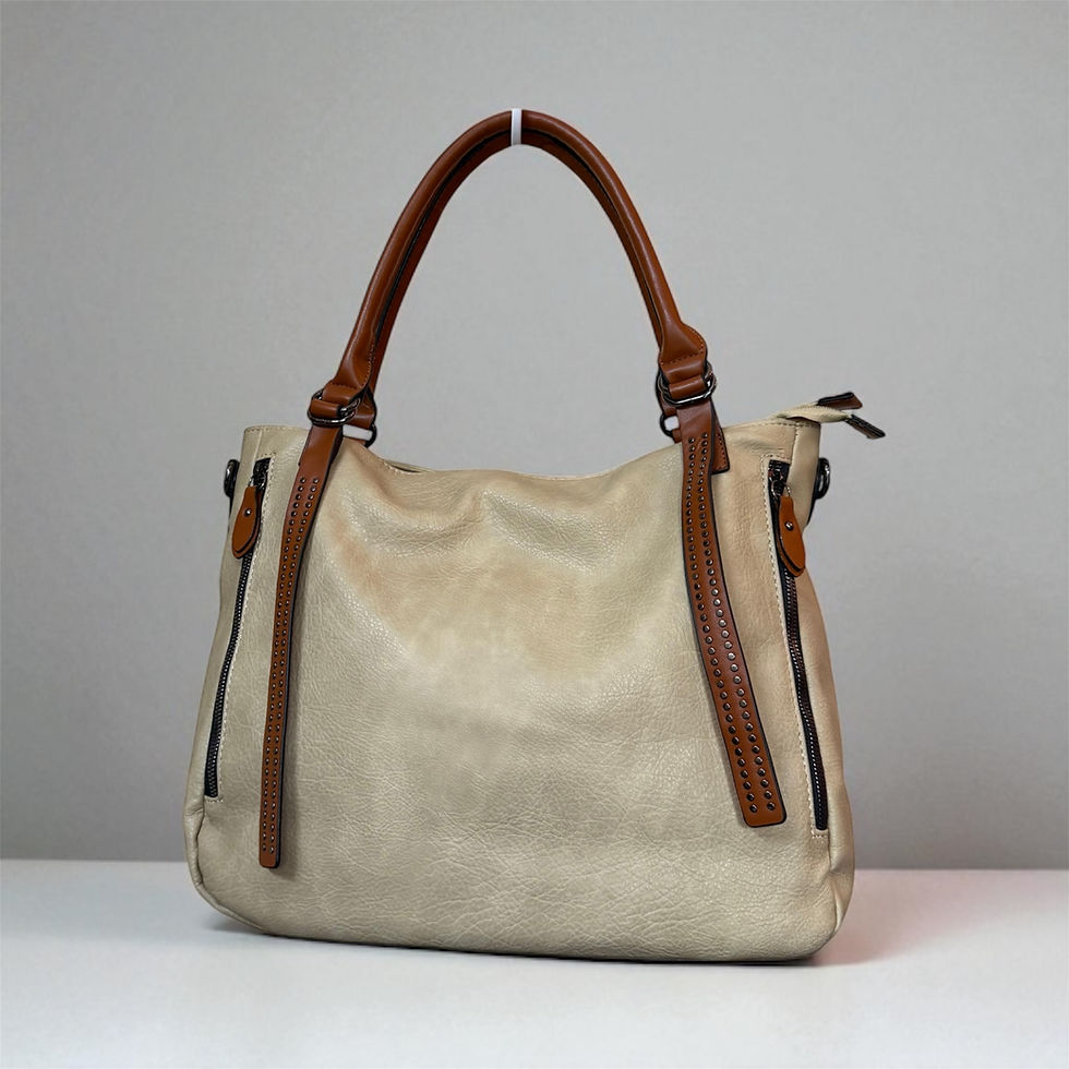 RIVA Cream Contrast Trim Shoulder Tote (Big)
